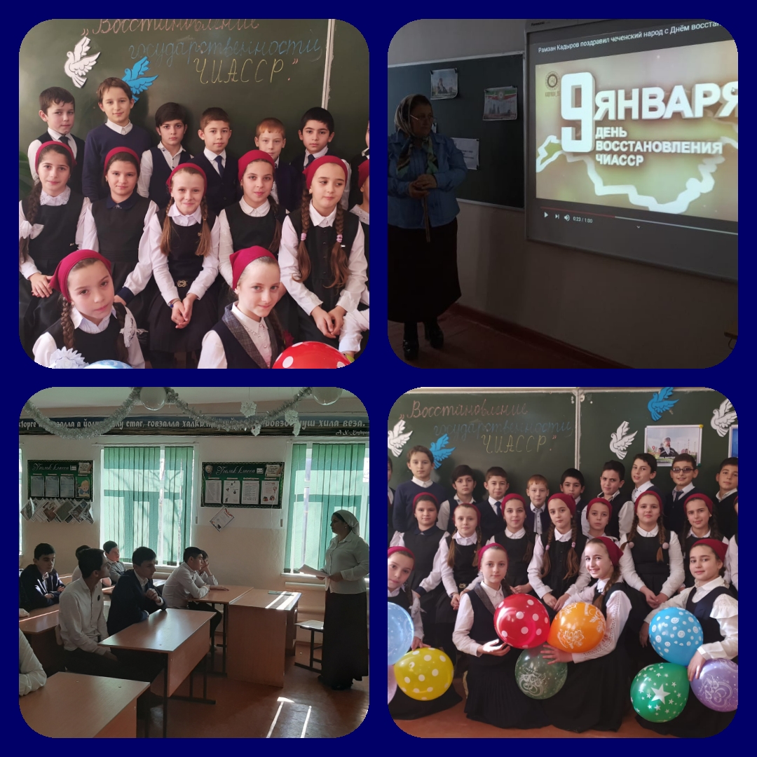 С целью формирования познавательного интереса к историческому прошлому своего народа и Чеченской Республики, расширения кругозора обучающихся, привития любви к Родине 13.01.2020г. в школе провели ряд мероприятий, посвященных 62-й годовщине восстановления государственности ЧИАССР:
