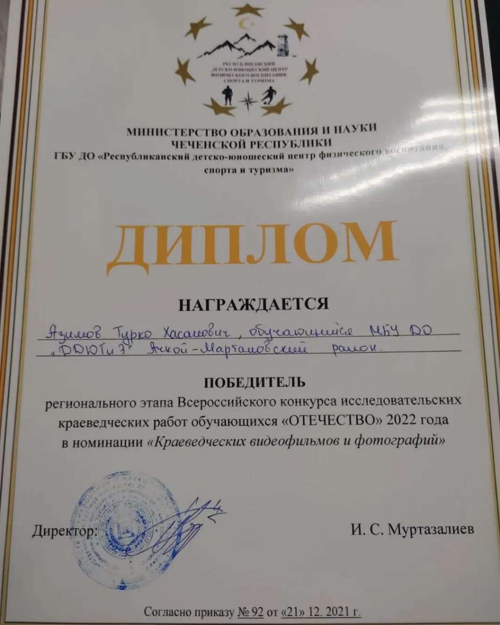 Победитель регионального Всероссийского конкурса исследовательских краеведческих работ обучающихся "Отечество"- 2022 года.