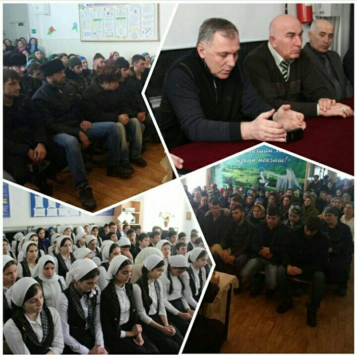 11 февраля 2017 года в школе им.Р.Эльмурзаева с.Хамби-Ирзи в присутствии руководителей муниципальных ведомств, сотрудников администрации и активистов ФМОПД «АХМАТ» провел встречу с учителями, школьниками и их родителями.