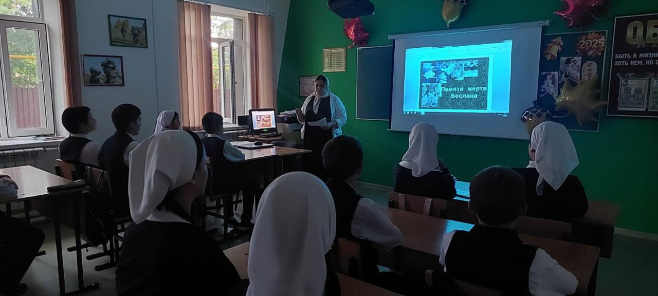 15.09.2025Во всех классах проведены классные часы с целью познакомить учащихся с событиями трагедии в Беслане, чтобы они понимали историческую значимость этого события. Воспитать чувство сострадания, уважения и памяти к жертвам террористического акта, особенно к детям и их семьям. Формировать у школьников осознание важности мира, безопасности и взаимопомощи в обществе.Развивать навыки эмоционального восприятия, умения выражать свои мысли и чувства в обсуждении сложных и трагических тем.Способствовать формированию гражданской ответственности и толерантности, противодействию насилию и экстремизму.